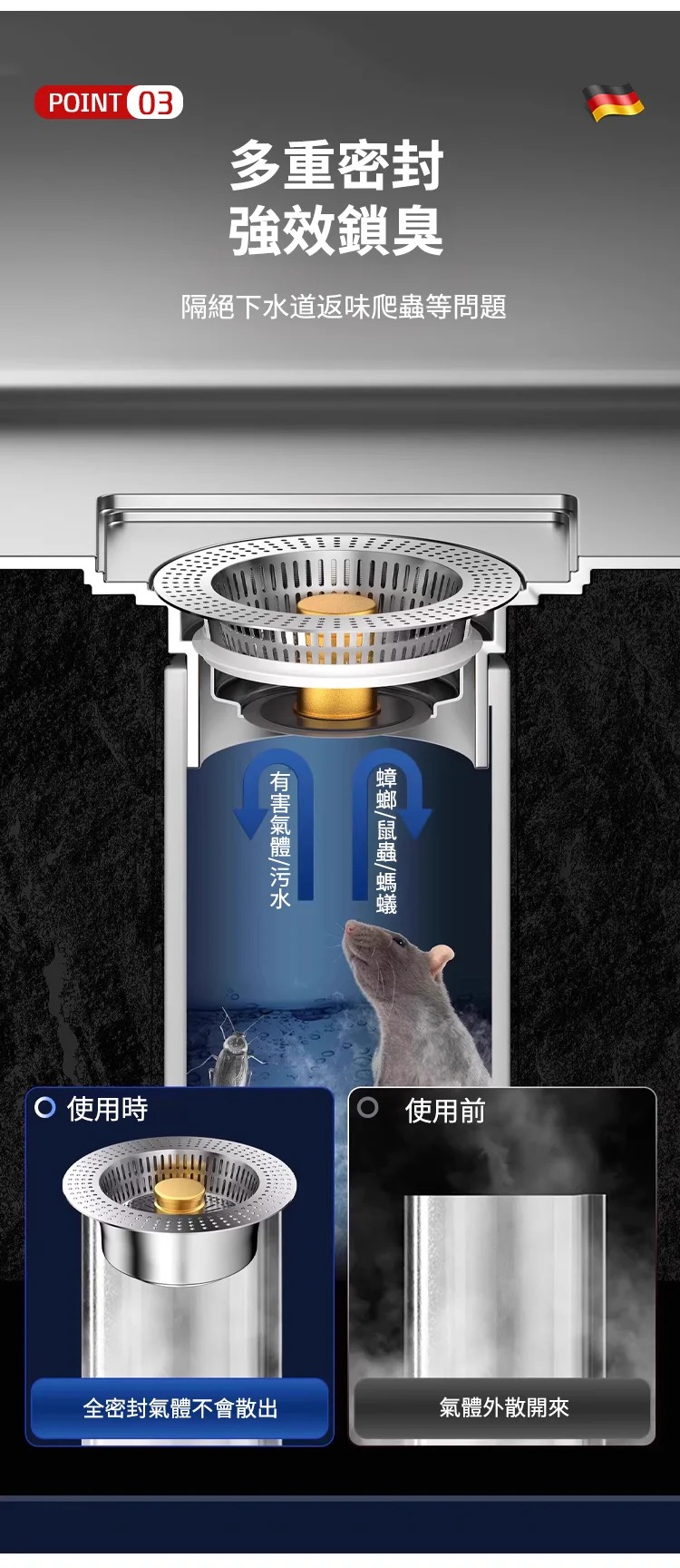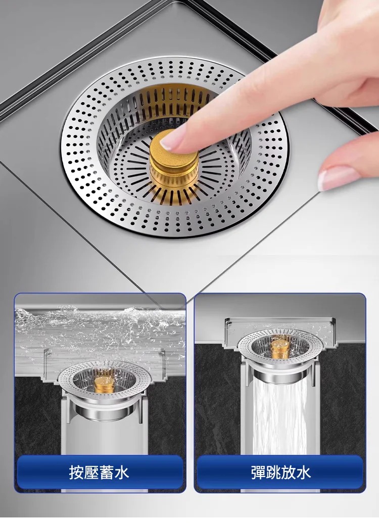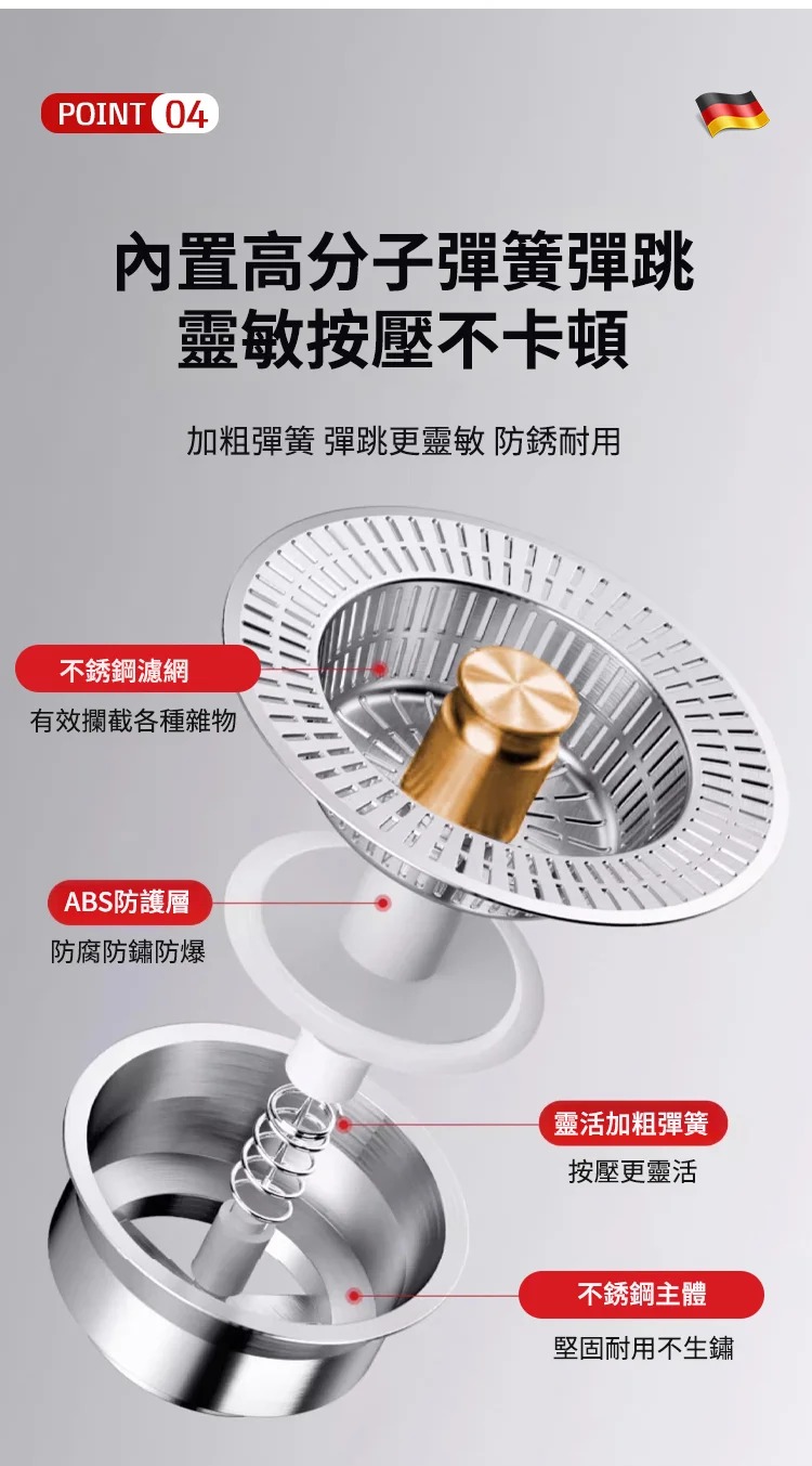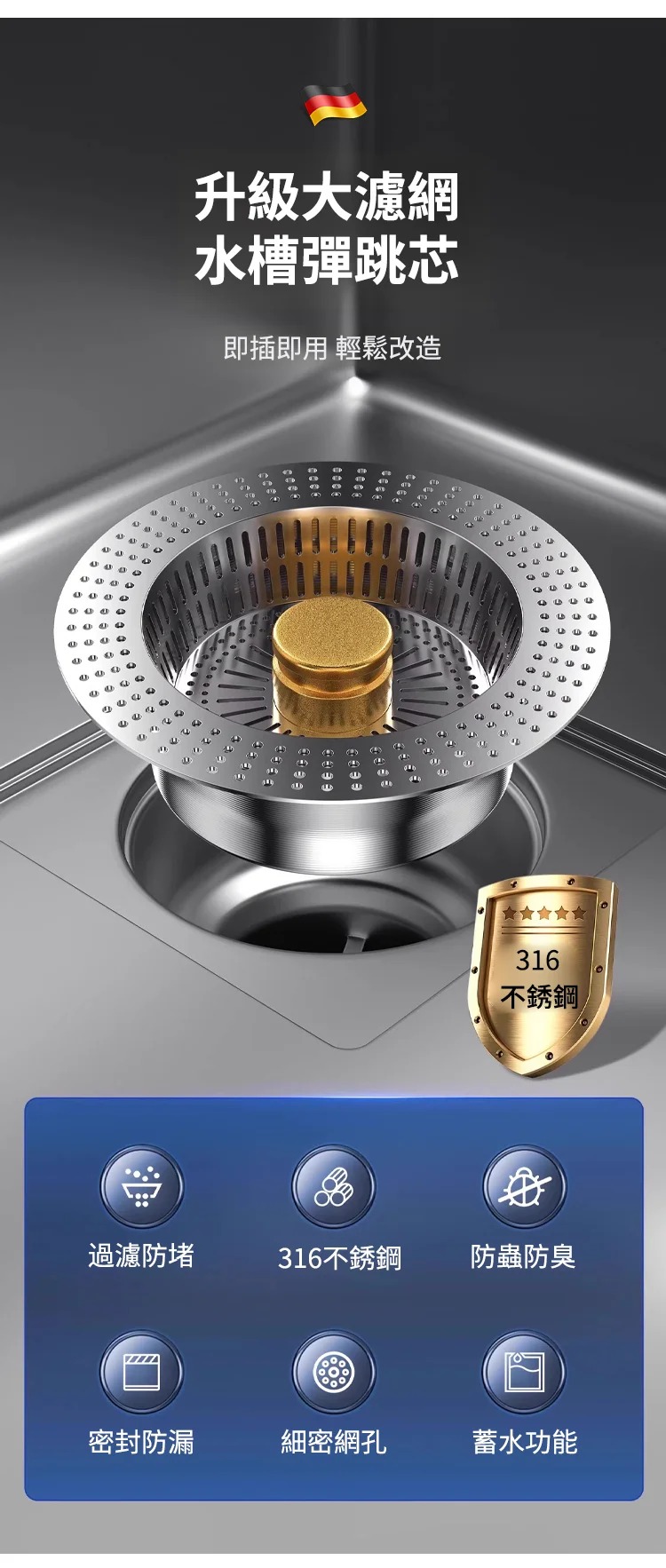 【升級大濾網】不锈鋼厨房水槽彈跳芯 防臭神器 一按就鎖味~殘渣不堵、蟑螂不爬,安裝只要30秒✨✅316不鏽鋼,硬漢級的守護✅ 加大點陣細密網孔✅多重密封✅ 內置加粗彈簧