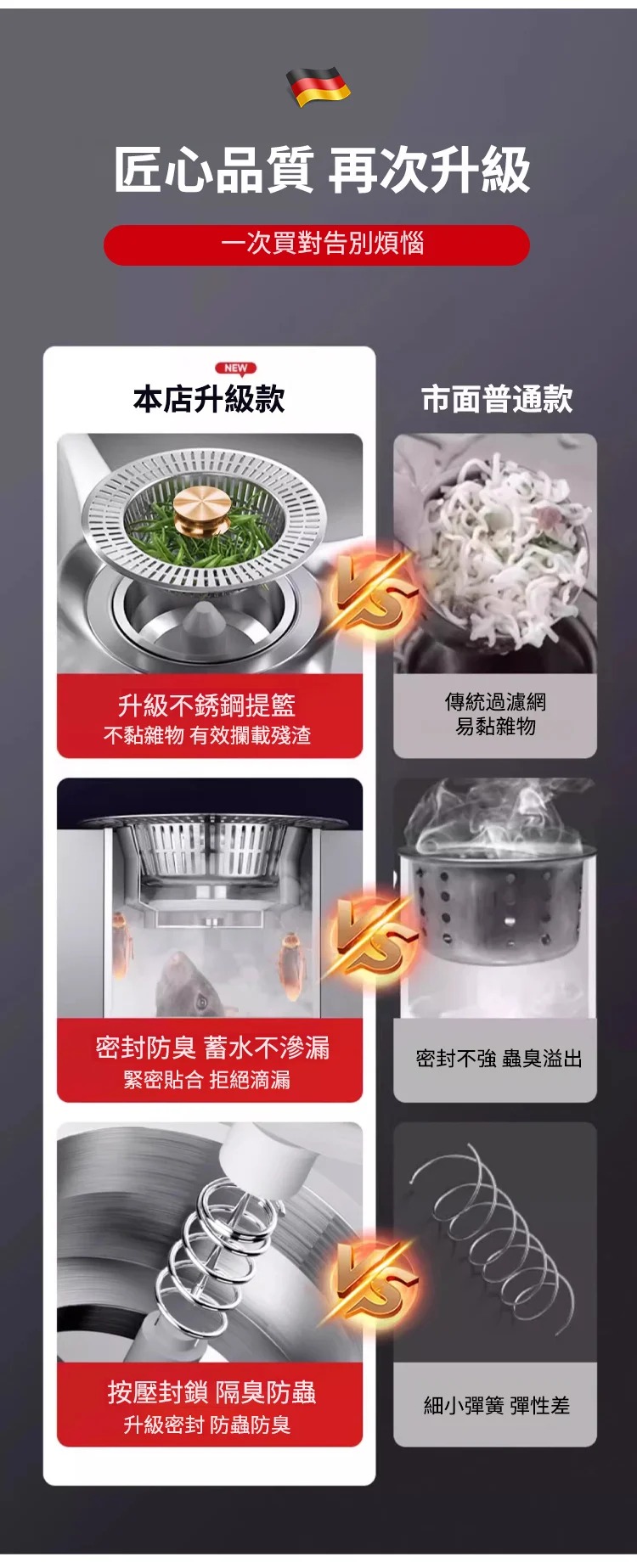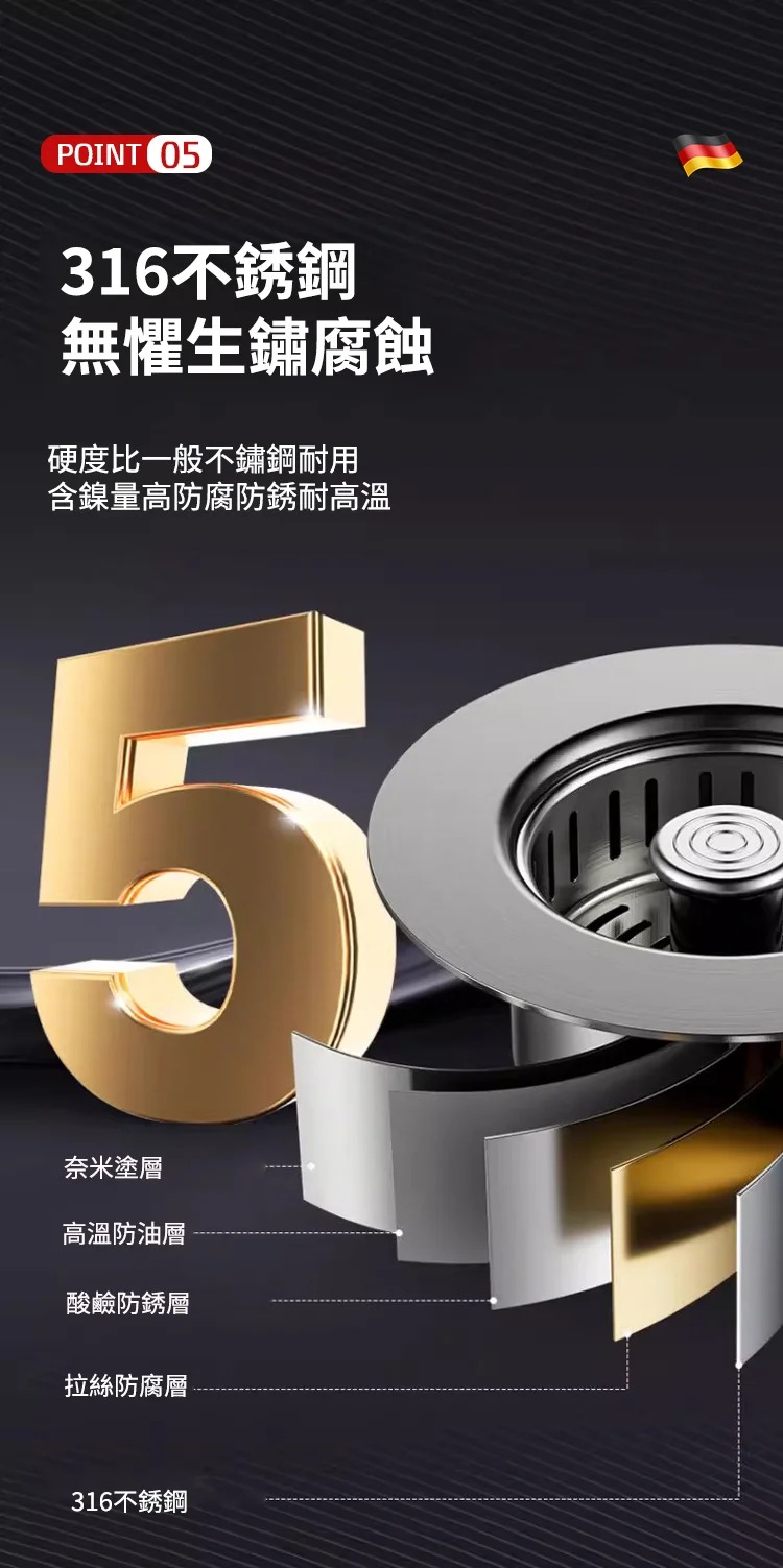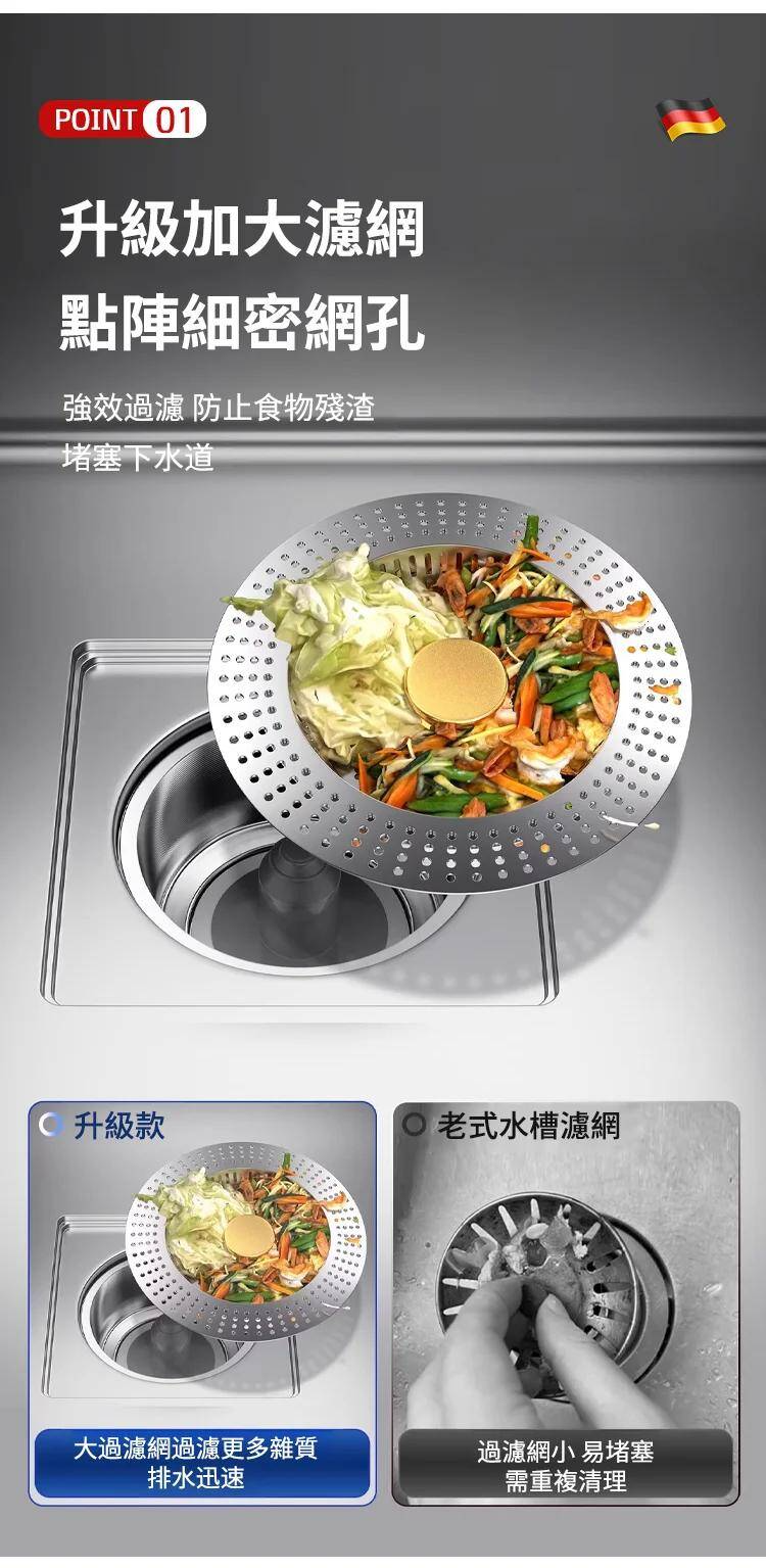 【升級大濾網】不锈鋼厨房水槽彈跳芯 防臭神器 一按就鎖味~殘渣不堵、蟑螂不爬,安裝只要30秒✨✅316不鏽鋼,硬漢級的守護✅ 加大點陣細密網孔✅多重密封✅ 內置加粗彈簧